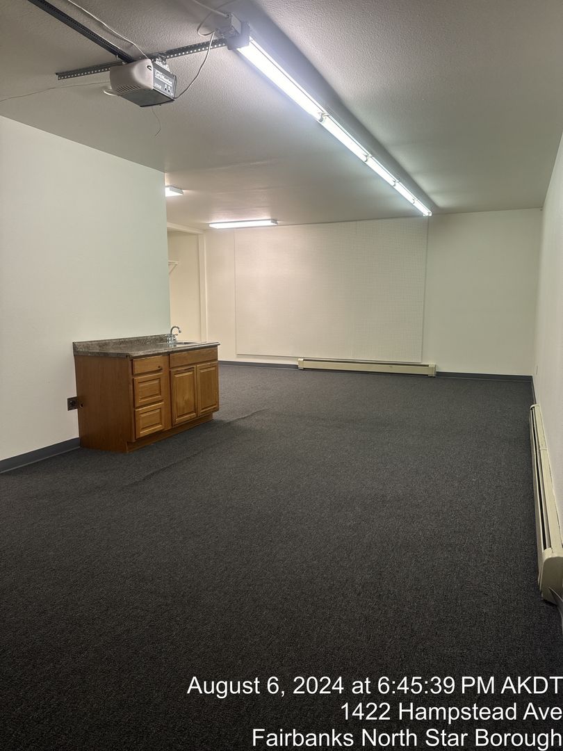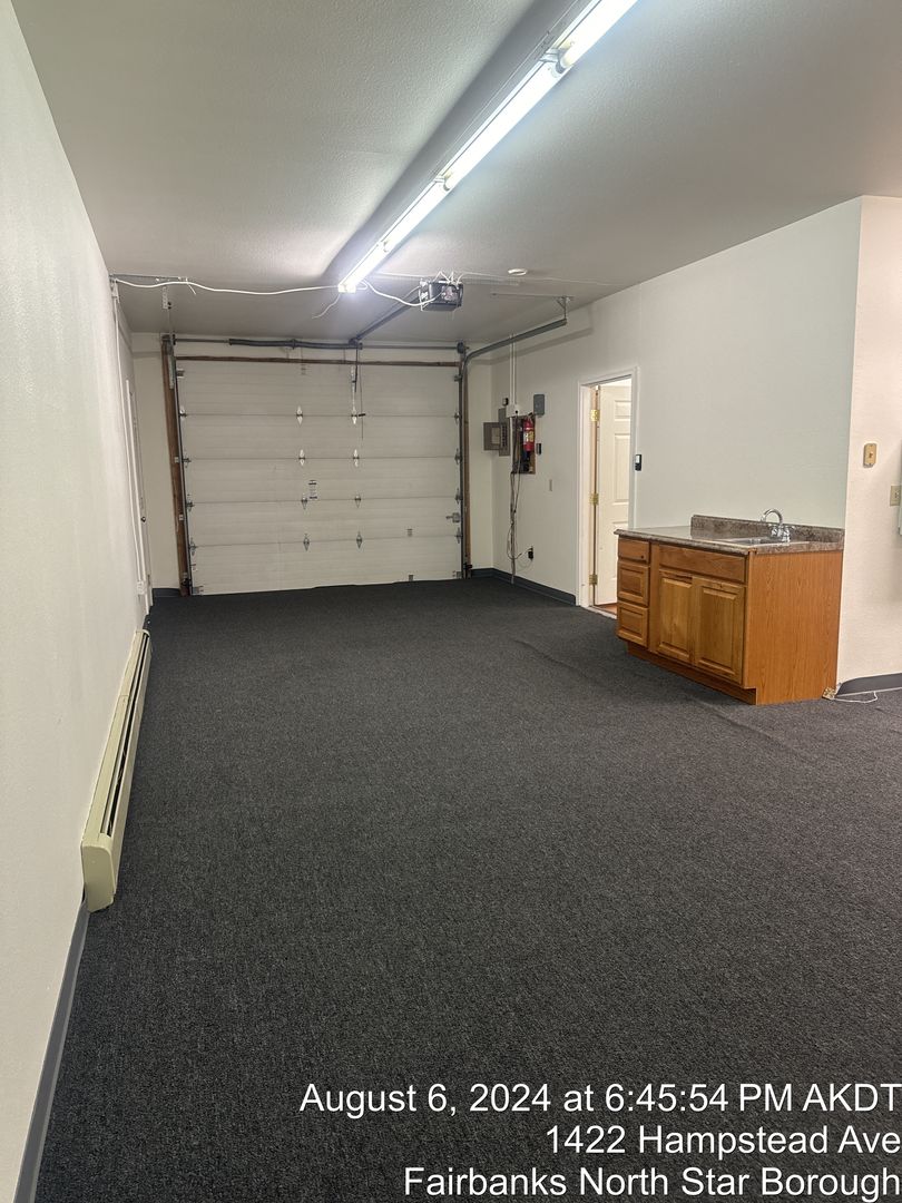 This versatile commercial unit is ideal for retail, office, studio, or light storage. The space offers an arctic entry, reception or retail area, private office, restroom, and a large open back room with an overhead garage door—perfect for a studio area, showroom, or customizable workspace.