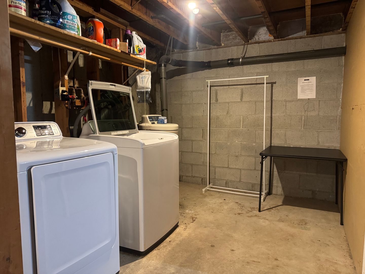 The basement includes a shared laundry area with free use of a washer and dryer, along with a large secure storage closet (approximately 10 ft x 10 ft).