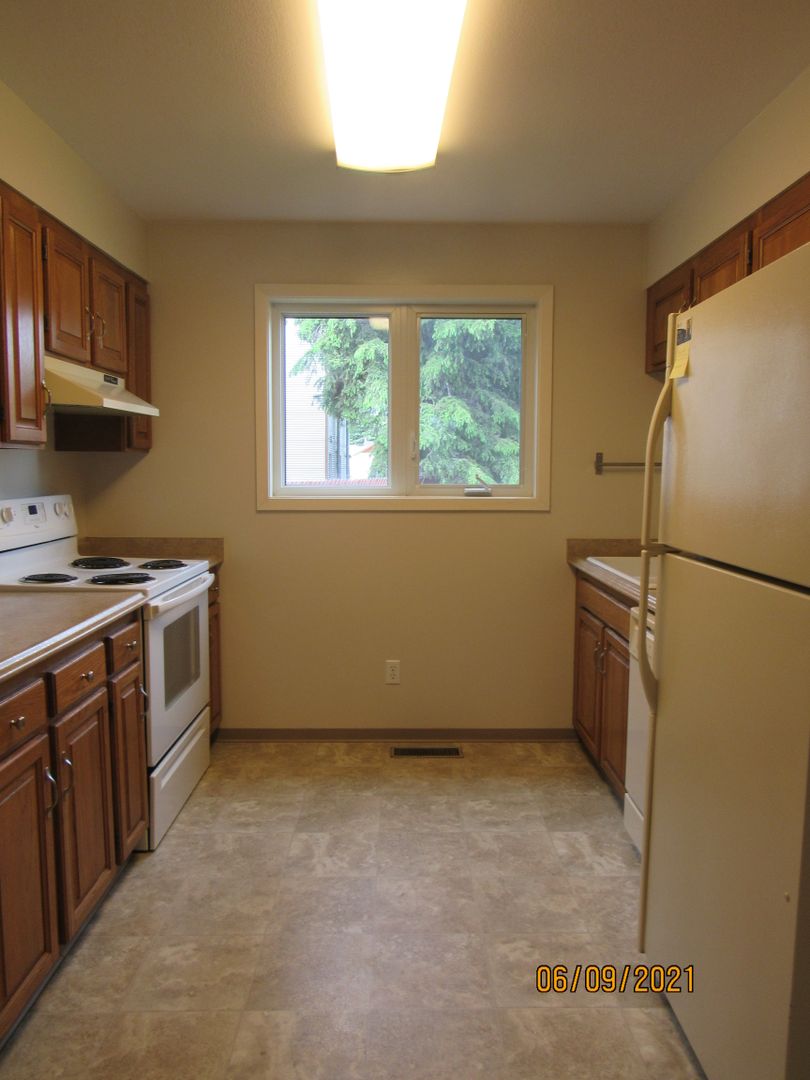The home features a private entrance and an arctic entry, which is especially helpful during the winter months. Inside, you’ll find a spacious living room with good natural light and a functional kitchen with ample cabinet space. The full bathroom offers additional storage.