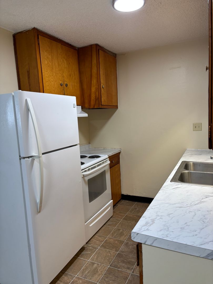 Inside, you’ll find three bedrooms, a spacious layout, and a large living room window that brings in plenty of natural light. The unit has been freshly painted, includes new window coverings, and features brand-new kitchen countertops for a fresh, updated look.
