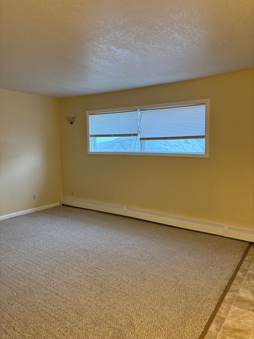 The apartment offers three bedrooms, plenty of space, and a large living room window that brings in lots of natural light. It’s been completely updated with new paint, carpet, linoleum, appliances, window coverings, and more, giving it a clean, fresh feel throughout.