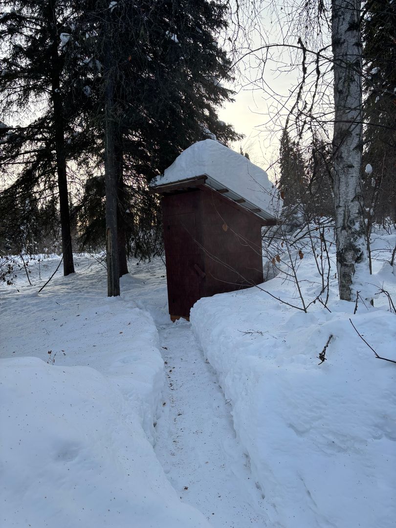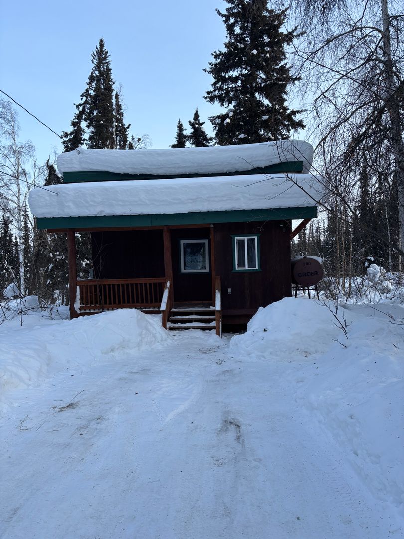 Nestled in a peaceful wooded setting off Goldhill Road, close to the University of Alaska Fairbanks, this delightful 1-bedroom dry cabin (No indoor bathroom or running water) welcomes you with vaulted ceilings and abundant windows, creating a bright, airy atmosphere that feels both cozy and spacious.