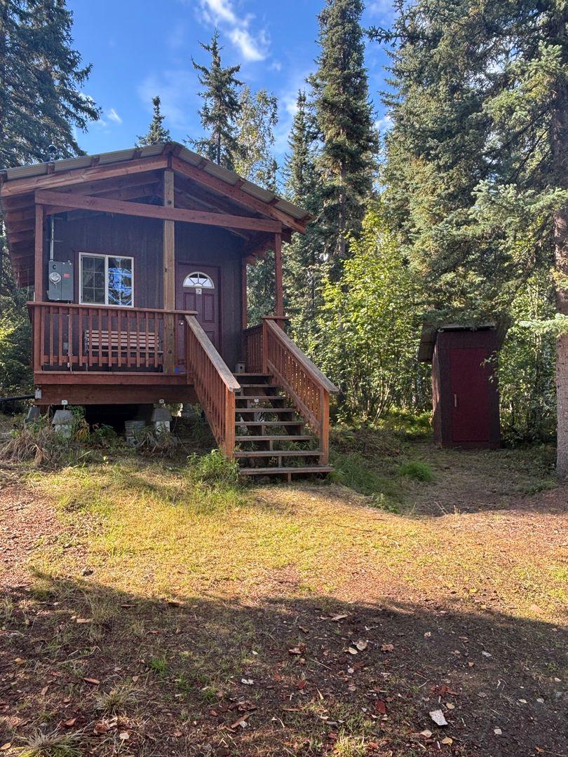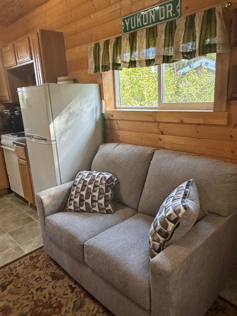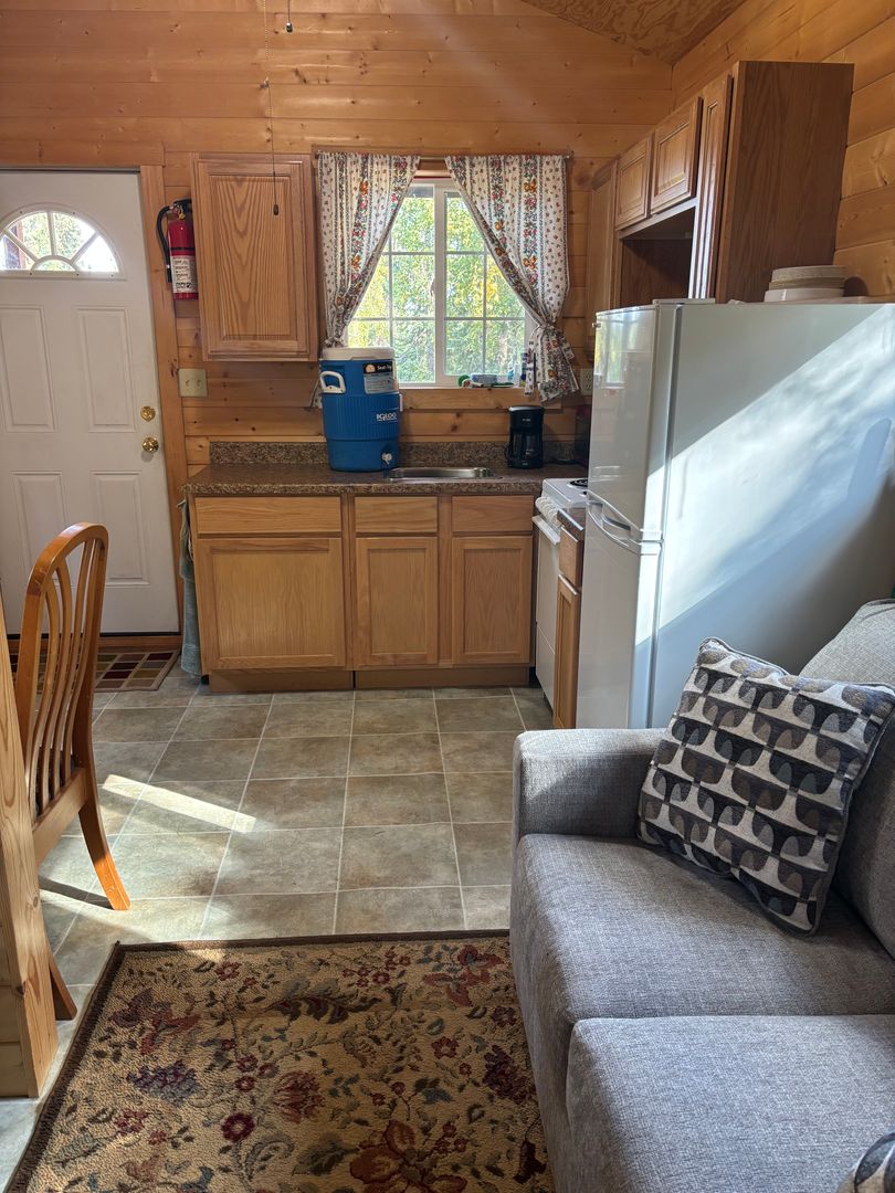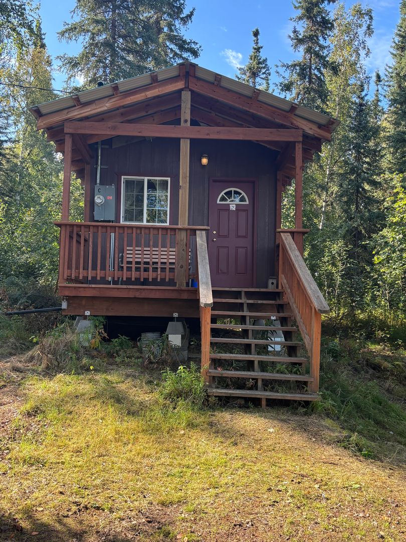 Welcome to your furnished dry tiny cabin in Fairbanks, AK! This furnished, dry cabin offers a unique blend of rustic charm and modern convenience. The kitchen comes equipped with a refrigerator, microwave and stove/oven, dishes, pots and pans, and numerous other kitchen items. Cabin includes bunk style sleeping with double and twin mattress's, a small sofa, table and 2 chairs. The covered porch provides a cozy outdoor space to enjoy the Alaskan scenery, regardless of the weather. The cabin has electric baseboard heat, ensuring a warm energy source. Plus, its proximity to UAF makes it an ideal location for those seeking easy access to the university. The private outhouse adds a touch of traditional Alaskan living to this comfortable and convenient living space. Experience the best of Fairbanks living in this unique and charming cabin. $550 Per month plus electric and $550 deposit. Sorry no pets or smoking